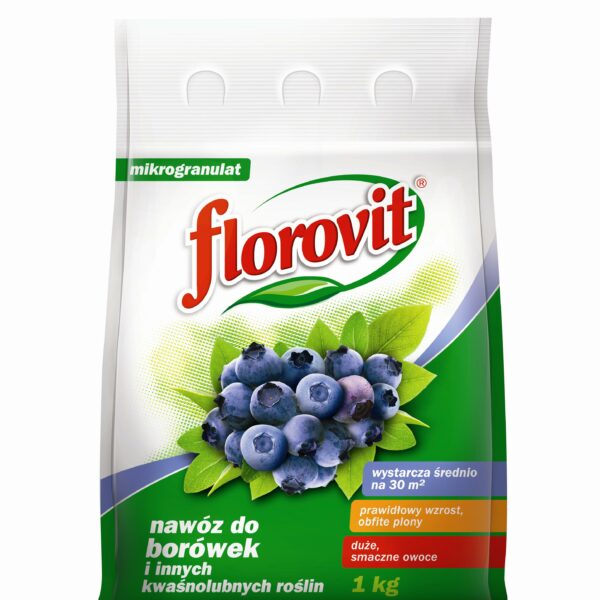 Wieloskładnikowy, mineralny nawóz doglebowy, przeznaczony do pogłównego dokarmiania borówek w pierwszym roku po posadzeniu i w dalszych latach uprawy. Ważną zaletą Florovitu do borówek jest zdolność zakwaszania gleby, co wyraźnie sprzyja wzrostowi i rozwojowi roślin wymagających stanowiska o niskim odczynie podłoża. Cechuje go również brak azotanów. Borówki sadzi się jesienią w podłoże o pH 3,8 - 4,8. Rośliny uprawiane w podłożu o zbyt wysokim odczynie charakteryzują się małymi przyrostami oraz przedwczesnym żółknięciem i opadaniem liści. Nawóz zapobiega chlorozie liści w okresie wegetacji roślin. Ponadto zastosowano w nim słabo przemieszczające się w glebie formy składników pokarmowych, co zabezpiecza je przed wymywaniem do wód gruntowych.Sposób stosowania:Borówki. Dokarmianie pogłówne rozpoczyna się wiosną na początku wzrostu roślin, czyli zwykle w połowie kwietnia. Drugie i trzecie nawożenie należy przeprowadzić każdorazowo po upływie kolejnych czterech tygodni. Zasilanie roślin zaleca się zakończyć do 15 czerwca. Nawóz po rozsypaniu wokół rośliny należy delikatnie wymieszać z glebą. Zalecane jest także podlanie roślin. Dawki: pierwszy rok po posadzeniu - trzy razy po 20 g/m2 łącznie 60 g/rok; dalsze lata uprawy - trzy razy po 30-35 g/m2 łącznie ok. 100 g/rok.Różaneczniki. Podobnie jak pod borówkę stosuje się przedwegetacyjnie przy sadzeniu na 1 roślinę 25-50 g nawozu (mieszając go z 25-50 l ziemi z dołka) zaś w następnych latach nawóz rozsiewa się pod koroną wczesną wiosną: w 1 roku w marcu ok. 20 g i w kwietniu ok. 20 g; w 2 roku w marcu ok. 25 g i w kwietniu ok. 25 g; w dalszych latach w marcu ok. 30 g i w kwietniu ok. 30 g.Azalie i wrzośce. Przedwegetacyjnie mieszamy z ziemią, do której sadzi się roślinę, ~ 10 g nawozu na 10 l ziemi. W następnych latach, wczesną wiosną (kwiecień) rozsiewa się pod koroną na powierzchnię ziemi ok. 10 g nawozu i obficie podlewa. W przypadku większych roślin (3-4 lata i starszych) nawożenie powtarza się po 2-3 miesiącach w takiej samej dawce. W uprawie pojemnikowej w przeliczeniu na litr podłoża nie należy przekraczać dawki 1 g nawozu.Paprocie i iglaki. Rośliny te można nawozić Florovitem pod borówki przedwegetacyjnie i pogłównie, jeśli gleba jest za mało kwaśna - pH gleby powyżej 6. Przedwegetacyjnie w przeliczeniu na 1 roślinę rozsiewa się jednorazowo i miesza z glebą ok. 10 g nawozu z 10-20 l gleby. W następnych latach jednorazowo rozsiewa się pod koroną wczesną wiosną ok. 10 g nawozu. Pod iglaki dawkę pogłówną nawozu uzależnia się od wieku rośliny: zwiększa się ją do 20 g, gdy roślina osiąga 0,5 m wysokości; do 40 g, gdy roślina osiąga 1 m wysokości; do 60 g, gdy roślina osiąga 2 m wysokości. Jedna łyżka stołowa zawiera średnio 10 g nawozu.Skład nawozu:NAWÓZ WE Nawóz NPK (MgO + SO3) 12,5 - 8,5 - 17,0 (2,5 + 32,0) z borem, miedzią, żelazem, manganem, molibdenem, cynkiem.12,5% (N) azot całkowity; 2,0% (N) azot azotanowy; 10,5% (N) azot amonowy; 8,5% (P2O5) pięciotlenek fosforu rozpuszczalny w obojętnym roztworze cytrynianu amonu i wodzie; 5,5% (P2O5) pięciotlenek fosforu rozpuszczalny w wodzie; 17,0% (K2O) tlenek potasu rozpuszczalny w wodzie; 2,5% (MgO) tlenek magnezu całkowity; 32,0% (SO3) trójtlenek siarki całkowity; 0,025% (B) bor całkowity; 0,1% (Cu) miedź całkowita; 0,17% (Fe) żelazo całkowite; 0,1% (Mn) mangan całkowity; 0,005% (Mo) molibden całkowity; 0,1% (Zn) cynk całkowity
