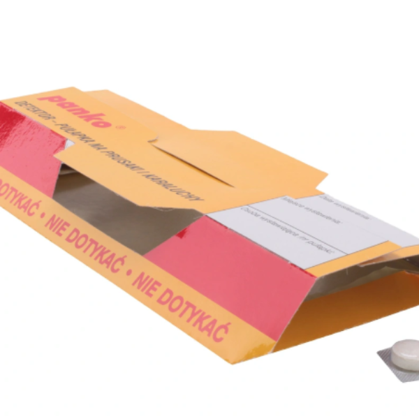 PANKO dyskretna wabiąca pułapka lepowa na KARALUCHY i PRUSAKI 1 szt.odławia karaczany prusaki i karaczany wschodnie,niewielka i dyskretna - zaledwie 180x100 mm,skuteczna i wabiąca - zawiera mocny atraktant,bezpieczna - nie zawiera substancji chemicznych,długie działanie - nawet do 2 miesięcy,stosowana przez profesjonalne ekipy DDD.Pułapka wabiąca PANKO to niezwykle skuteczna broń na prusaki, karaluchy oraz inne owady biegające. Nie zawiera insektycydów, ani innych szkodliwych substancji chemicznych. Dzięki temu jest wyjątkowo bezpieczna w stosowaniu. Zachowuje skuteczność nawet do 2 miesięcy od wystawienia, a jej unikalną cechą jest tabletka, która silnie przyciąga owady specyficznym zapachem. Owady zwabione do jej wnętrza są skutecznie tam zatrzymywane za pomocą silnej klejowej powierzchni.Pułapka polecana przez profesjonale ekipy dezynsekcyjne do zwalczania i monitorowania obecności prusaków i karaluchów.Detektor PANKO idealnie nadaje się do mieszkań i domów oraz w gastronomii.Pułapkę PANKO rozłożyć, zdjąć listek papieru zabezpieczający warstwę lepu, wyjąć tabletkę wabiącą i położyć w centralnej części powierzchni klejowej. Uformować detektor na kształt przypominający "domek", a następnie umieścić w wybranym miejscu. Zapełnioną pułapkę wyrzucić do zsypu lub śmietnika.