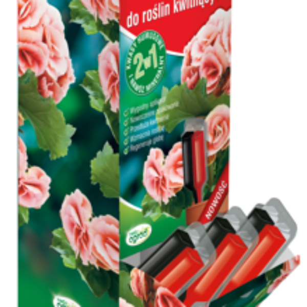 Odżywka ROSAHUMUS do roślin kwitnących gotowy do użycia aplikator.Wzmacnia roślinęRegeneruje glebęPrzedłuża kwitnienie (opcjonalnie)Odżywia rośliny przez 4 tygodnieSposób użycia:Odżywkę ROSAHUMUS do roślin kwitnących można stosować przez cały sezon, co 1-2 miesiące. Na każdą roślinę należy stosować jeden aplikator. 1 Odetnij końcówkę aplikatora w zaznaczonym miejscu. 2 Włóż końcówkę aplikatora w podłoże tak, aby roztwór swobodnie wypływał. Roztwór wypływa z aplikatora przez około 48h. Po opróżnieniu aplikator można usunąć z podłoża. Roztwór, który przedostał się do podłoża przy odpowiednim podlewaniu działa około 4 tygodni.Środek wspomagający uprawę roślin. Gotowy do użycia środek do regeneracji roślin kwitnących. Stosować co 1-2 miesiące jeden aplikator na każdą roślinę.Przechowywać w temperaturze nie mniejszej niż 6°C i nie większej niż 35°C w miejscu niedostępnym dla dzieci i zwierząt. Chronić przed słońcem. Okres przydatności do użycia: 5 lat. Data produkcji na opakowaniu jednostkowym.Skład: wodny roztwór NPK, wodny roztwór Rosahumusu, stabilizator, barwnik.
