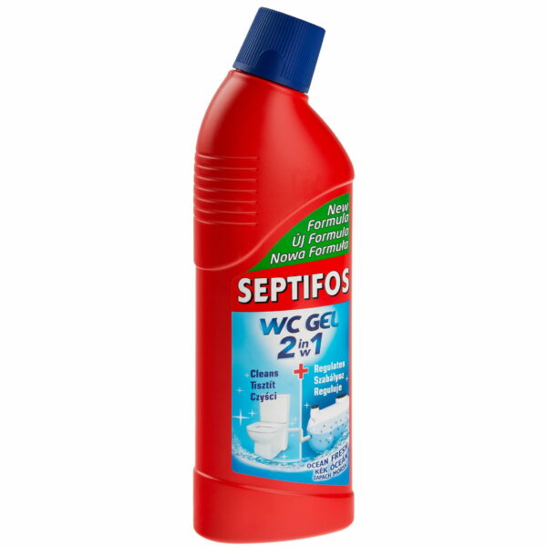 Żel WC Septifos 2w1 - został opracowany do czyszczenia muszli WC i innych sanitariatów połączonych z szambem. Czyści sanitariaty nie niszcząc równowagi biologicznej w szambie. Ułatwia i wspomaga działanie aktywatorów biologicznych.Skutecznie usuwa:brudkamieńnieprzyjemne zapachyzapobiega zamulaniu się szambaprzewodów kanalizacyjnychwspomaga działanie aktywatora biologicznego SEPTIFOSSposób użycia:Dokładnie spryskać powierzchnię pod obrzeżem muszli klozetowej.Po 30 minutach spłukać wodą.W celu usunięcia silnych zabrudzeń pozostawić na noc.Stosować 1-2 razy w tygodniu.