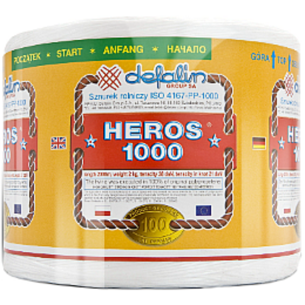 HEROS sznurek do maszyn rolniczychDoskonale nadaje się do snopowiązałek i pras niskiego stopnia zgniotu. Alternatywnie stosowany jest do pras zwijających słomę lub siano. Stopień zgniotu i naprężenia występujący w gotowym produkcie zezwala na zastosowanie najcieńszego ze sznurków o niższej wytrzymałości na zerwanie.Ilość metrów w kg(m/kg) 1000Wytrzymałość (kG) 40Wytrzymałość w węźle (kG) 22Waga kłębka (kg) 2Ilość metrów w kłębku 2000