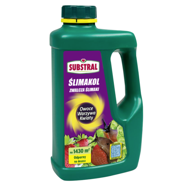 Substral Ślimakol. Środek do zwalczania ślimaków. Chroni rośliny ozdobne, owoce i warzywa przed uszkodzeniami spowodowanymi przez ślimaki. Jedna aplikacja wystarcza na 2 tygodnie. Odporny na wilgoć i deszcz nawet przez 14 dni dzięki specjalnej formulacji. Działa profilaktycznie oraz interwencyjnie. Szybko widoczny efekt.Substral Ślimakol jest środkiem w formie granul do bezpośredniego stosowania. Chroni rośliny ozdobne i rośliny warzywne oraz truskawkę przed uszkodzeniami spowodowanymi przez ślimaki. Działa kontaktowo i żołądkowo. Jedna aplikacja wystarcza nawet do 2 tygodni. Specjalna formulacja powoduje, iż środek ten jest odporny na deszcz nawet do 14 dni. Po spożyciu środka przez ślimaki następuję ich odrętwienie, a następnie śmierć w wyniku odwodnienia organizmu. Do stosowania w przydomowych działkach warzywnych i przydomowych ogrodach zarówno na zewnątrz (uprawa polowa), jak i w uprawie pod osłonami.Zawartość substancji czynnej: metaldehyd (związek z grupy aldehydów) - 3% (30 g/kg) EUH208 - Zawiera (R)-p-Menta-1.8-dien. Może powodować wystąpienie reakcji alergicznej.