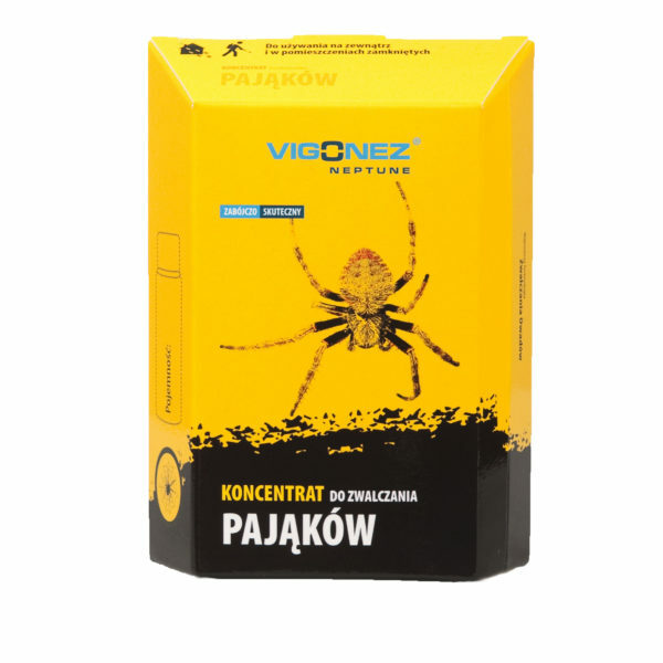 Vigonez Neptune koncentrat do zwalczania pająków pozwoli Ci raz na zawsze zapomnieć o tych problemach z pajęczakami! Środek cechuje się niesamowitą skutecznością i długością działania. Efekty zauważalne już po pierwszym użyciu!Zabezpiecza przed tworzeniem się pajęczyn i wnikaniem do pomieszczeń nowych pająków. Vigonez Neptune to środek na pająki będący preparatem bezzapachowym, nie brudzącym tkanin. Po zastosowaniu preparatu pomieszczenie po przewietrzeniu można użytkować już po upływie 30 minut.Ekstremalnie długie działanieBardzo wysoka wydajność koncentratuPreparat nieplamiący, bezwonny i łagodny dla otoczeniaDaje efekt rezydualny - wyniszcza zarówno dorosłe osobniki jak i larwySkuteczność już po dwóch dniach po użyciuZastosowanieKoncentrat może być wykorzystywany wszędzie tam gdzie zauważono znaki aktywności pajęczaków. Zaleca się używanie preparatu w miejscach, w których pojawiły się świeże pajęczyny. Środek zabezpiecza przed tworzeniem się pajęczyn i wnikaniem do pomieszczeń nowych pająków.Preparat znajdzie swoje zastosowanie zarówno na zewnątrz jak i wewnątrz. Dzięki specjalnemu wężykowi dołączonemu do puszki środek dotrze w każde trudno dostępne miejsce, a w takich pająki lubią przebywać najczęściej. Może być efektywnie wykorzystywany w miejscach takich jak budynki mieszkalne, zakłady przetwórstwa, w szkołach, koszarach, żłobkach, przedszkolach, hotelach, restauracjach, szpitalach itp.Vigonez Neptune koncentrat to środek na pająki będący preparatem bezzapachowym, nie brudzącym tkanin. Po zastosowaniu preparatu pomieszczenie po przewietrzeniu można użytkować już po upływie 30 minut.Skład:cypermetryna 10g / 100gtetrametryna 2g / 100gCzas działania: do 6 miesięcyPreparat wystarczy na pokrycie powierzchni o kubaturze ok. 25 metrów kwadratowych.Sposób użycia:Przed skorzystaniem z preparatu Vigonez na pająki należy zabezpieczyć żywność, oraz inne artykuły, na które środek może mieć wpływ.Preparat na pająki w postaci koncentratu stosuje się w stężeniu 10ml / 2l wody. Należy go stosować najlepiej przy pomocy spryskiwacza ręcznego. W przypadku większych powierzchni aplikować opryskiwaczem ciśnieniowym. Właściwości biobójcze uzyskujemy już po 2 dniach od zastosowania preparatu. W razie występowania większej ilości osobników operację oprysku należy powtórzyć.Przed rozpoczęciem zabiegu dezynsekcji należy zabezpieczyć wszystkie artykuły spożywcze i pasze, jak również zwierzęta hodowlane, domowe i zabawki dziecięce, naczynia i przedmioty użytkowe.Niezbędny czas wentylacji pomieszczenia po wykonaniu oprysku na owady: 30 minut.Okres wyłączenia obiektu z użytkowania 60 minut.Powierzchnie mogące mieć kontakt z żywnością należy dokładnie zmyć przy pomocy dostępnych detergentów.UwagaNie należy stosować preparatu w miejscach, gdzie kontakt z produktem mogą mieć osoby postronne, w tym szczególnie dzieci, kobiety w ciąży, kobiety karmiące, alergicy, osoby starsze, osoby chore, a także w miejscach, gdzie kontakt z produktem mogą mieć artykuły spożywcze, napoje oraz środki żywienia zwierząt.Produkt biobójczy należy używać z zachowaniem szczególnych środków ostrożności. Odpady opakowaniowe należy utylizować zgodnie z przepisami lokalnymi, regionalnymi, krajowymi lub międzynarodowymi. Zabrania się wykorzystywania opróżnionych opakowań do innych celów (w tym jako surowców wtórnych). Przed użyciem należy przeczytać etykietę i ulotkę informacyjną, aby zminimalizować ryzyko dla ludzi i środowiska.Przed użyciem zapoznaj się z treścią etykiety zamieszczonej na produkcie!