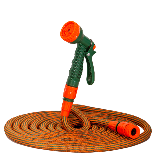 Wąż ogrodniczy- rozciągliwy 5-20m WOX 20Wąż WOX20, który rozciąga się z 5 metrów do 20 metrów.Wąż wykonany jest z dwóch warstw wysokiej jakości lateksu dostosowanego do pracy w najcięższych warunkach.Warstwa zewnętrzna została zrobiona z bardzo mocnego włókna syntetycznego splecionego w taki sposób aby zapewniał maksymalną ochronę węża oraz jak największą elastyczność.Dzięki temu w kilka sekund po napełnieniu wąż rozciąga się i wielokrotnie zwiększa swoją długość.Po odcięciu zasilania wody samoczynnie wraca do pierwotnej długości. Jego wielką zaletą jest to, że nie załamuje się ani nie skręca.Wąż wyposażony jest w dwie szybkozłączki oraz przyłącze z redukcją.Wielofunkcyjny pistolet dołączony do zestawu posiada 7 trybów zraszania oraz funkcję blokady - wystarczy odchylić metalowy haczyk w pistolecie, aby woda płynęła bez konieczności ciągłego przyciskania spustu pistoletu.
