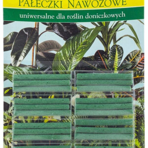 Pałeczki nawozowe uniwersalne to najwygodniejszy nawóz dla roślin doniczkowych. Składniki nawozowe są sklejone w całej swojej masie specjalnym lepiszczem. To sprawia, że są one uwalniane powoli i zależnie od ilości wody którą podlewamy. Dzięki zastosowaniu pałeczek nawozowych rośliny otrzymują pokarm regularnie. Znikome ryzyko przenawożenia. Działają przez 2 miesiące NAWÓZ WE, NPK 10-5-6