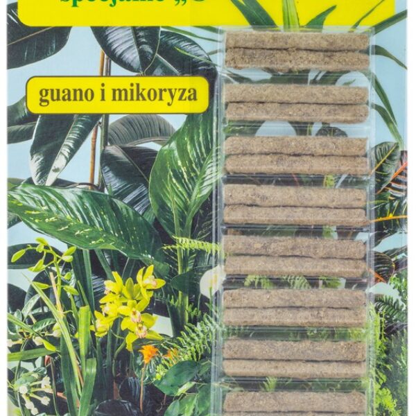 Pałeczki specjalne przeznaczone są dla roślin osłabionych przez szkodniki glebowe lub owady żerujące na częściach naziemnych roślin ozdobnych. Pomagają roślinie wzmocnić system odpornościowy.Opakowanie: 20 sztuk pałeczek.SKŁAD: naturalne enzymy, grzyby, bakterie i substancje odżywiające mikroorganizmy pochodzące z naturalnego Guano.