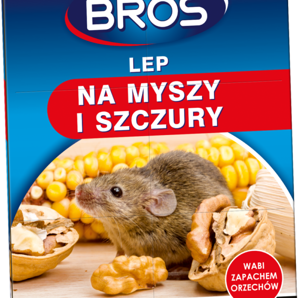 Lep na myszy i szczury BrosLep o wabiącym zapachu orzechów, służący do wyłapywania myszy i szczurów. Gotowy do użycia i wyjątkowo skuteczny, nie zawiera substancji bójczych i może być używany w miejscach, gdzie niewskazane jest stosowanie trutek. Specjalna, nowoczesna formuła kleju sprawia, że lep nie wysycha, jest odporny na zmienne warunki pogodowe, a jednocześnie wyjątkowo silny – uniemożliwia gryzoniom uwolnienie się.