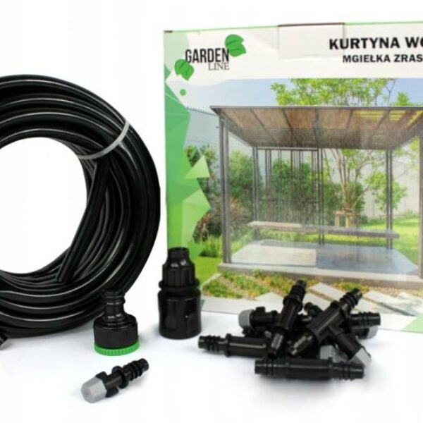 KURTYNA WODNA MGIEŁKA ZRASZAJĄCA 10 M Kurtyna wodna to świetne rozwiązanie dla każdej osoby w upalny dzień. Mgiełka dostarcza nam natychmiastowego ochłodzenia. Prosta instalacja oraz możliwość budowania własnych konstrukcji to dodatkowo świetna zabawa. Posiada zakręcane dysze, możliwość cięcia węża w dowolnym miejscu. Zestaw jest modułowy, dlatego można łączyć kilka zestawów ze sobą. Zadaniem kurtyny jest:Obniżenie temperatury otoczeniaPoprawa jakości powietrza (usuwanie kurzu, eliminowanie nieprzyjemnych zapachów), a takżeNawadnianie małych szklarniZestaw składa się z:przyłącze kranowe- 1xrura czarna PCV 15m -1xszybko-złączka-1xdysza zraszająca-7xdysza zraszająca końcowa- 1xopaska zaciskowa- 10xSpecyfikacja:Łatwa instalacjaPodłącze przy użyciu kranuKąt natrysku: 80-90 stopniZużycie wody: 1,6-3,4 l/hObszar pokrycia: 3-4 m²Wydajność chłodnicza: -5-10 °C