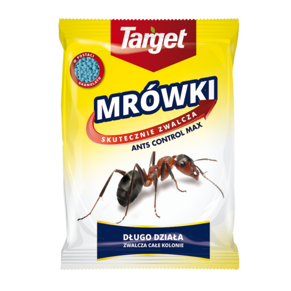 Ants Control zwalcza mrówki 100g granulat TargetProdukt bardzo skutecznie zwalczający mrówki w domu i ogrodzie. Preparat granulowany w formie trutki pokarmowej zwalczający mrówki. Wygodne w stosowaniu zamykane opakowanie z dozownikiem. Widoczną warstwę granulek należy usypać na gnieździe, ścieżce wędrówki owadów w ilości ok 10 g. W razie potrzeby należy czynność powtórzyć. Preparat można stosować w pomieszczeniach domowych, biurowych, magazynowych na terenach przyległych do budynków oraz na zewnątrz pomieszczeń: tarasy, balkony, podjazdy, chodniki i garaże.Stosowanie:V - IXSposób użycia:Zalecaną warstwę granulek należy usypać na gnieździe, ścieżce wędrówki owadów. W razie potrzeby należy powtórzyć czynność. W korzystnych warunkach pogodowych kolonie mrówek ulegają całkowitemu wyginięciu po ok. 20 dniach od zastosowania.Zalecana dawka:Widoczną warstwę granulek należy usypać na gnieździe, ścieżce wędrówki owadów w ilości około 10 g.Zastosowanie:Preparat zwalczający mrówki, przynęta w formie granulatu do posypania. Preparat można stosować w pomieszczeniach (domowych, biurowych, magazynach), na terenach przyległych do budynków (fundamenty) oraz na zewnątrz pomieszczeń.Skład:Zawiera substancję czynną: - 0,5 % cypermetryny (0,5 g / 100 g)