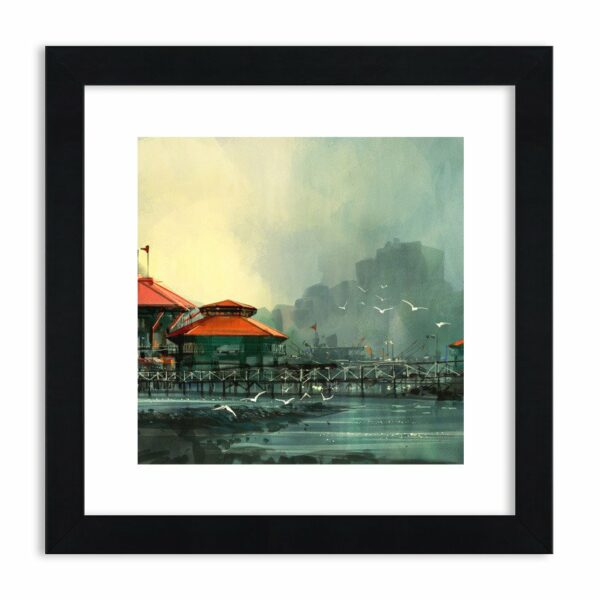 Obraz w ramie - Słotny dzień w porcie - 30x30 cm (1 element) typ AC - Rama koloru czarnego