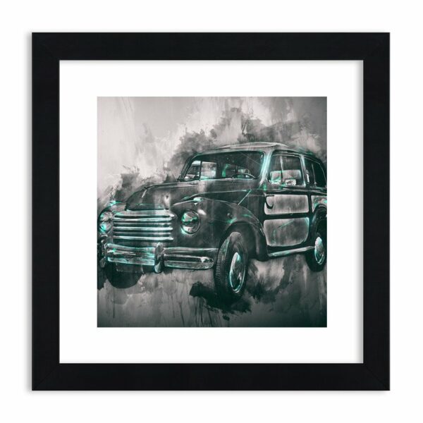 Stary samochód w kolorze grafitu. Wspomnienie lat przeszłych i dawnej świetności. Turkusowe akcenty na masce podkreślają urodę samochodu…