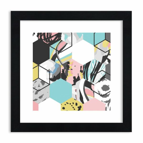 Obraz w ramie - Sześciokąty i sześciany w sześciu barwach - 30x30 cm (1 element) typ AC - Rama koloru czarnego