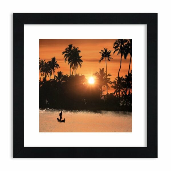 Powrót do domu w promieniach słońca. Wsiądź do tej łódki i zabierz się razem z płynącym. Podziwiaj wieczorne promienie słońca, wyspę z palmami pełnymi kokosów i spokojne morze…