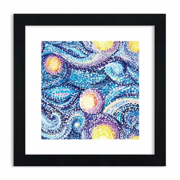 Pełne impresji planety, czy kule wśród niebieskich i fioletowych plamek. A wszystko tworzy obraz dynamicznych fal, które wręcz mają chęć wypłynąć z obrazu...