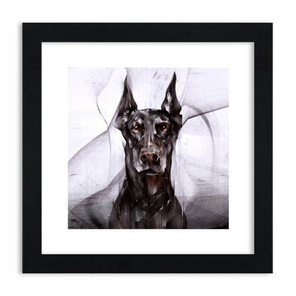 W kolorze grafitu i brązu, na jasnym tle majestatyczny pies rasy doberman. Wzbudza szacunek i respekt, a jego przenikliwe spojrzenie przeszywa każdego…