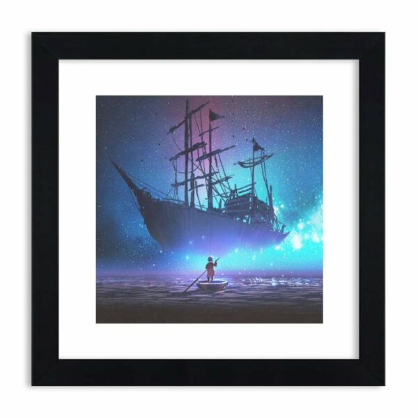 Stary żaglowiec widmo na drodze chłopca w łodzi. Czy czujesz lęk patrząc na ten żaglowiec? Ten mały chłopiec na pewno pragnie spotkać kapitana tego okrętu. Myślisz, że to możliwe?...