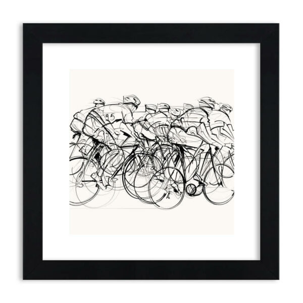 Kilka kresek prostych, kilka krzywych i mamy portret peletonu zdążającego do zwycięstwa. Biało-czarna kompozycja jest tak ascetyczna, że aż przyciąga uwagę...