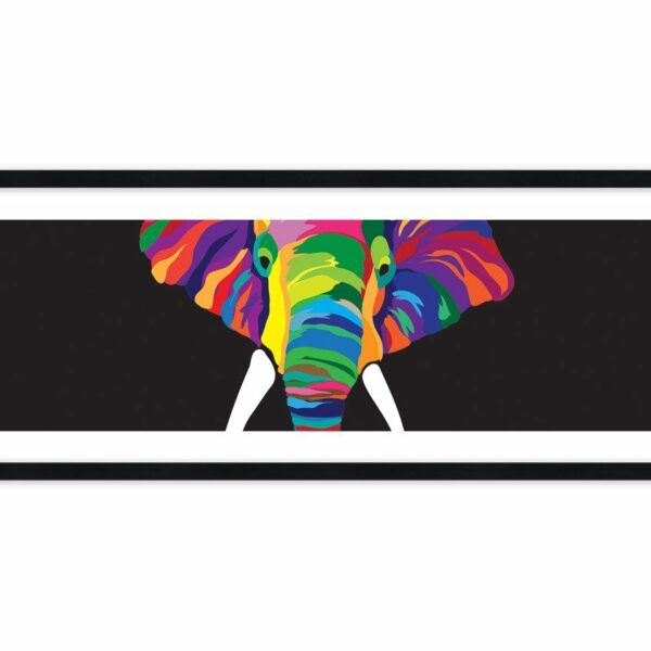 Obraz w ramie - Słoń, który kochał kąpać się w tęczy - 100x40 cm (1 element) typ AB - Rama koloru czarnego