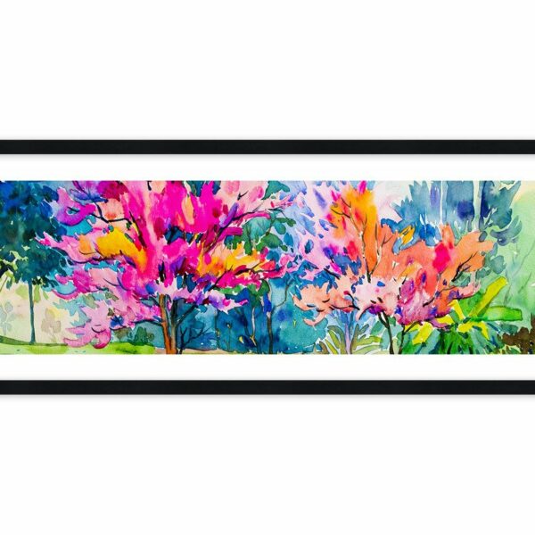 Obraz w ramie - Tęczowy ogród w wiosennym blasku - 100x40 cm (1 element) typ AB - Rama koloru czarnego