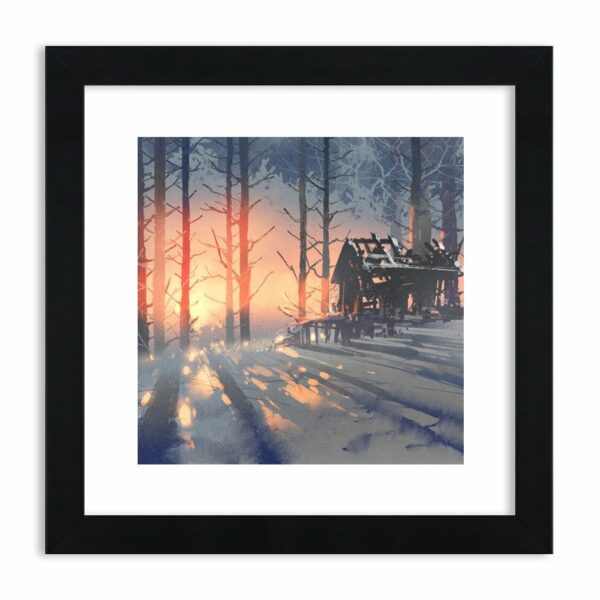 Pastelowy obraz zimy. Stara, opuszczona chata, śnieg i drzewa czekające na wiosnę. Na szczęście chętnie zagląda tu słońce i ociepla ten ascetyczny obraz…