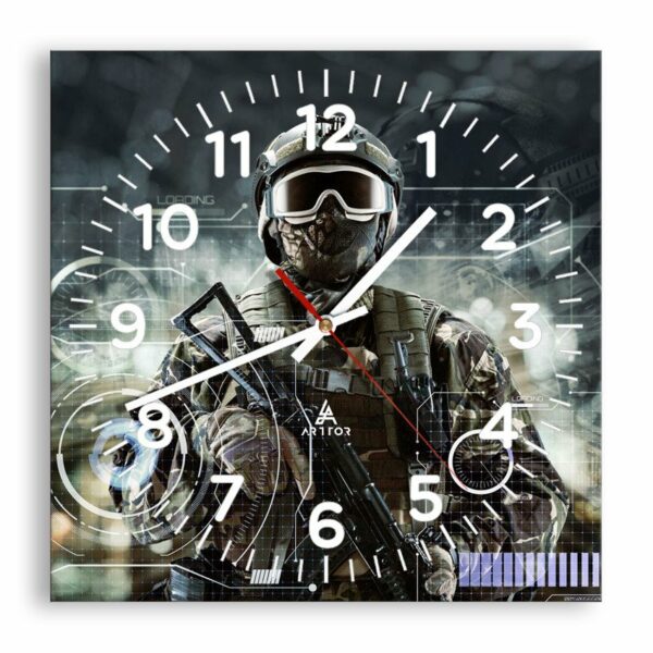 Żołnierz przyszłości. Pełne uzbrojenie w wersji przyszłych wojsk. Karabin, maska, hełm, wszystkie elementy wyposażenia konieczne do bitwy i dodatkowe wyposażenie elektroniczne…