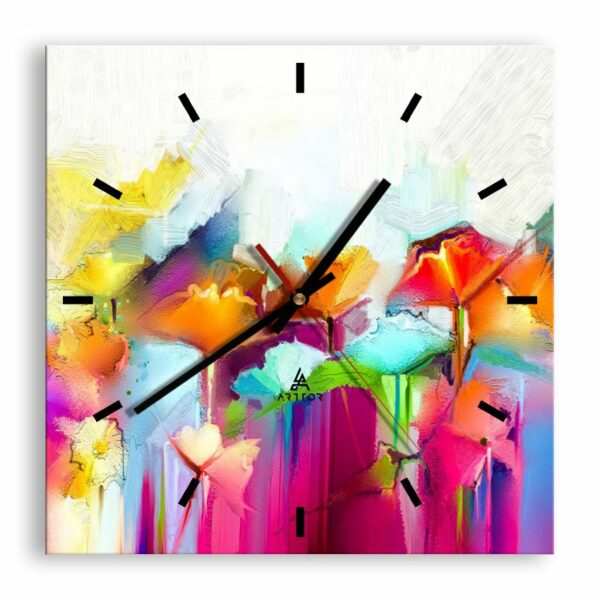 Zegar ścienny - Tęcza zakwitła - 30x30 cm - typ AC - Cyferblat kreski