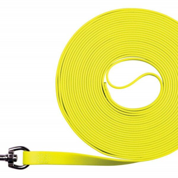 Wytrzymała, płaska linka treningowa Easy Life marki Trixie wykonana została z taśmy pokrytej materiałem PVC. Tworzywo sprawdzi się w każdych warunkach pogodowych.Cechuje je: wodoodporność, odporność na brud, odporność na ścieranie oraz rozerwanie. Niezwykle łatwa w czyszczeniu, wystarczy przetrzeć mokrą szmatką i zawsze wygląda jak nowa!Linka posiada wygodną rączkę do trzymania jak klasyczna smycz. Neonowy żółty kolor zapewnia doskonałą widoczność linki nawet z daleka w każdych warunkach pogodowych.Linka treningowa dla psa jest przydatna podczas treningu oraz uprawiania sportu z pupilem. To absolutny niezbędnik podczas nauki przywołania (zarówno psów dorosłych jak i szczeniąt). Produkt polecany jest właścicielom, którzy nie potrafią poradzić sobie z ucieczkami swojego psa (umożliwiając im swobodny spacer).