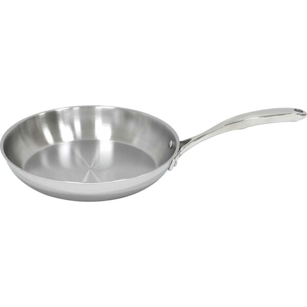 Trójwarstwowa patelnia o doskonałych parametrach – wnętrze oraz płaszcz magnetyczny wykonane z wysokiej jakości stali nierdzewnej odpornej na uderzenia. Posiada rdzeń aluminiowy, dzięki któremu ciepło jest rozprowadzane równomiernie co sprawia, że potrawy bardzo szybko się nagrzewają i nie przypalają się. Przystosowana do gotowania na kuchniach indukcyjnych, gazowych i elektrycznych.