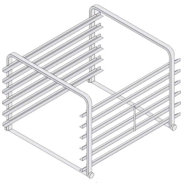 Stelaże ruchome z wysokiej jakości stali szlachetnej spełniają najwyższe wymogi jakościowe i są optymalnie dostosowane do urządzeń Rational. Do szybkiego załadunku i rozładunku urządzenia Rational. Do użytkowania tylko w połączeniu z szyną wjazdową.