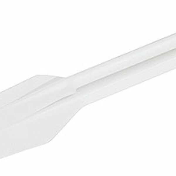 Szpatuła lub skrobak z uszkiem do zawieszenia wykonany z białego plastiku. Wymiary bez uchwytu 120 x 65 mm. Długość uchwytu 140 mm.