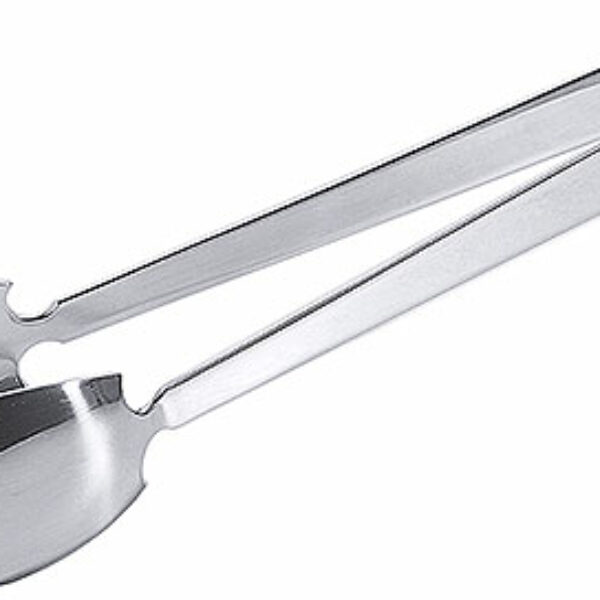 Szczypce do serwowania. Posiadają z jednej strony łyżkę do nabierania sosu a z drugiej widelec przytrzymujący np. mięso. Model z ozdobnym dekorem na uchwycie.