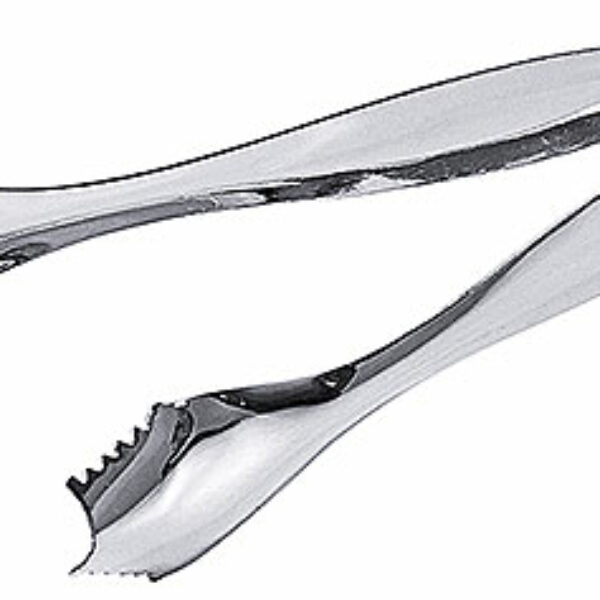 Szczypce do kostek lodu wykonane z polerowanej stali nierdzewnej, monoblok.