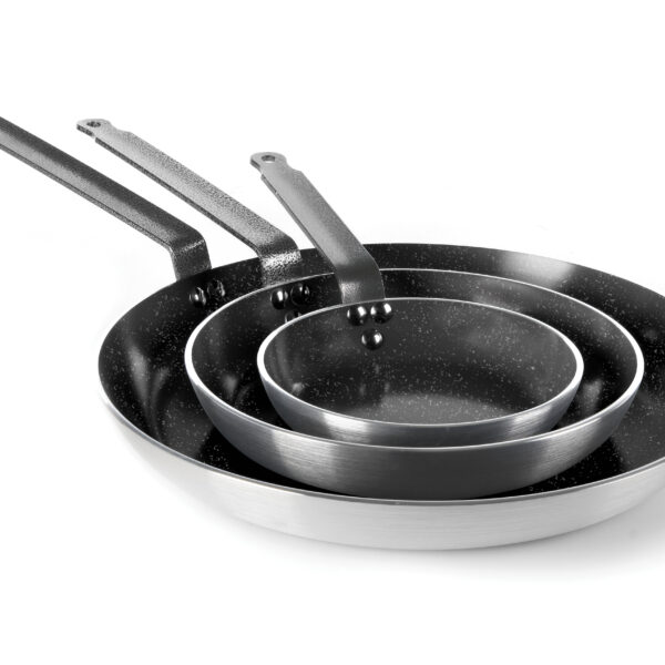 Wykonana z twardego odlewu aluminium, odpowiednia do wszystkich typow kuchni, mozna używać w piecach. Aluminiowy korpus zapewnia szybkie i rownomierne rozprowadzanie ciepła, dzieki czemu patelnia jest gotowa do uzytku w krotkim czasie. Uchwyty wykonane z epoksydowanej stali. Powłoka marmurkowa zapobiegajaca przywieraniu charakteryzuje się odpornoscia na wysoka temperaturę (do +260°C). Powłoka nakładana jest w trzech warstwach, co zwieksza jej odporność na zuzycie. Bardzo łatwe mycie, nie można myć w zmywarce.