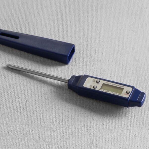 Zakres pomiaru od -40 do +200 stopni Celsjusza.Jednostka pomiaru stopnie Celsjusza lub Fahrenheita.Stopniowanie 0,1 stopnia.Funkcja HOLD - zachowanie temperatury chwilowej.Sonda ze stali nierdzewnej 105 mm.Samoczynne wyłączanie.Osłona sondy.Ergonomiczny uchwyt.Bateria w zestawie.