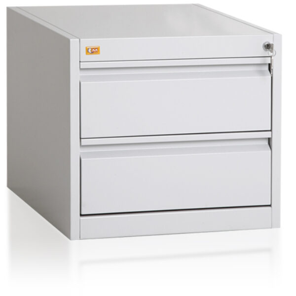 Dwuszufladowa szafa przystosowana do przechowywania kartotek formatu A-5. Szuflada posiada przegrodę umożliwiającą ułożenie dwóch rzędów kartotek w poziomie. Wykonana jest z blachy czarnej o grubości od 0,6mm- 2,0 mm, malowana farbami proszkowymi (epoksydowo-poliestrowymi) w kolorze RAL 7035. Szuflady przesuwają się po prowadnicach teleskopowych z blokadą zabezpieczającą przed wypadnięciem. Całość zamykana jednym centralnym zamkiem. Maksymalne obciążenie prowadnic szuflady: 80kg. Szafa posiada blokadę pozwalająca na wysunięcie tylko jednej szuflady, co zachowuje jej stabilność.