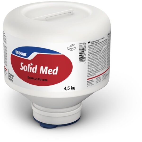 Środek do mycia naczyń Solid Med to silnie skoncentrowany produkt o doskonałym działaniu wybielającym gwarantujący osiągnięcie maksymalnej efektywności mycia i dezynfekcji oraz maksymalną higienę mycia w średnio twardej wodzie. Technologia Defoam 2010 przeciwdziałająca tworzeniu się piany w zmywarce, zapewnia właściwą skuteczność mechanicznego procesu mycia gwarantującą jego olśniewające rezultaty.Opakowanie można po zużyciu produktu łatwo zgnieść, przez co zmniejsza się objętość odpadów i obniża koszty ich usuwania, transportu, co wpływa na lepszą ochronę środowiska naturalnego.