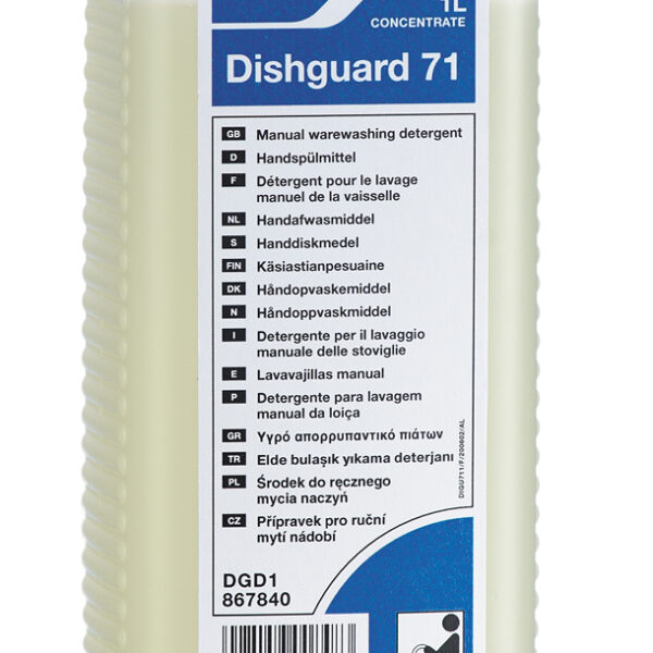 Dishguard 71 bardzo wydajny środek przeznaczony do czyszczenia garnków, patelni, talerzy itp.Preparat jest delikatny dla skóry rąk.