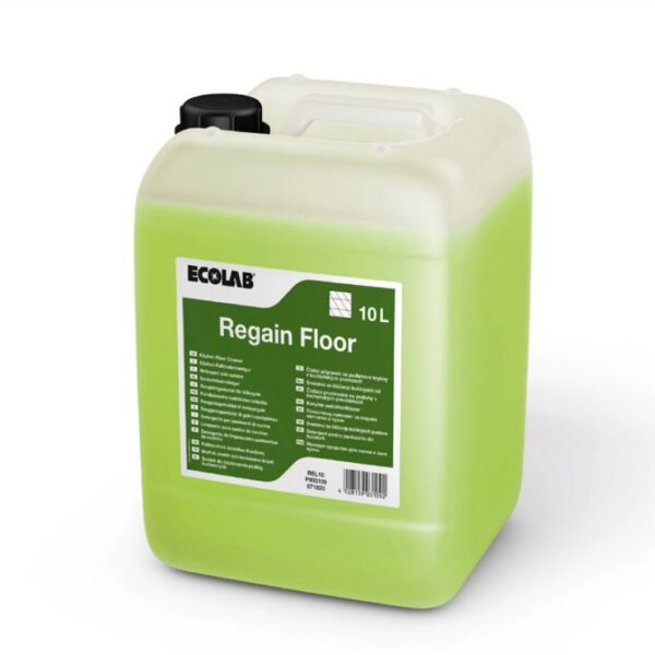 Regain Floor jest silnym środkiem przeznaczonym do codziennego czyszczenia wszystkich wodo- i zasadoodpornych podłóg i usuwania uporczywych zabrudzeń w kuchniach, stołówkach i innych miejscach przygotowywania żywności. Dzięki zawartości składników aktywnych z łatwością usuwa zabrudzenia i tłuste plamy. Można go ównież stosować na powierzchniach mikroporowatych, szorstkich i profilowanych. Regain Floor nie wydziela dużych ilości piany, dzięki czemu doskonale nadaje się do wykorzystania w szorowarkach.