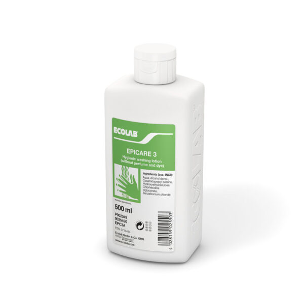 Epicare 3 jest bezbarwną i bezapachową, higieniczną, utrzymująca neutralne pH skóry emulsją do mycia rąk. Przeznaczona jest do mycia dłoni w kuchniach, gastronomii czy hotelarstwie.