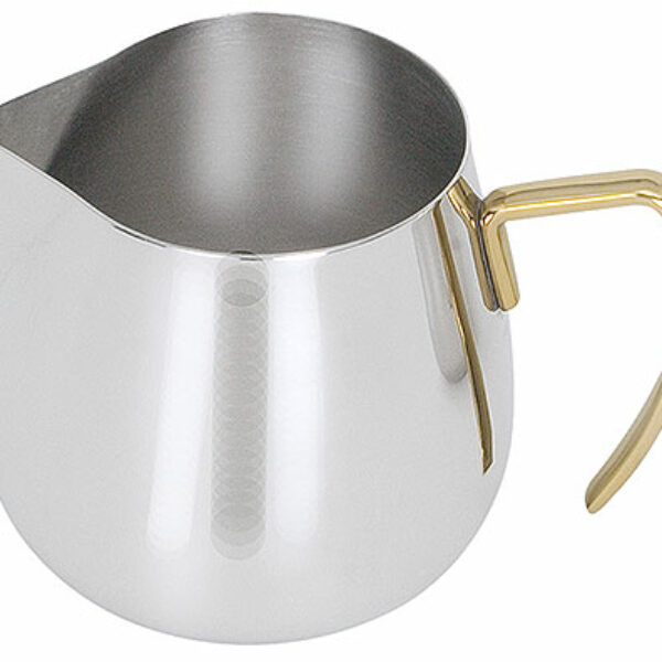 Dzbanuszek na śmietankę z polerowanej stali nierdzewnej z pozłacanym uchwytem.