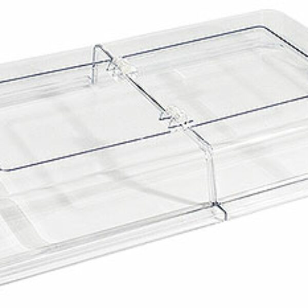 Pokrywa bufetowa wykonana z mocnego poliwęglanu o odporności na temperaturę do 65 stopni Celsjusza. Dzięki łączu na środku może być połowicznie otwierana. Pasuje do tac GN 1/1. Można sztaplować.