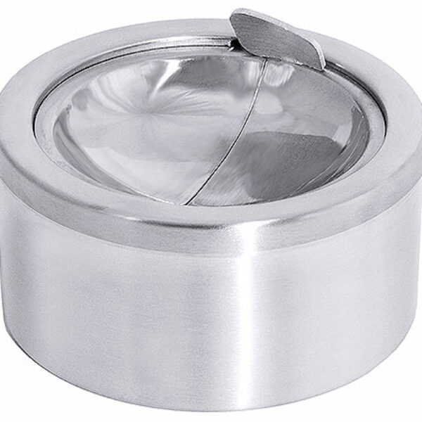 Popielniczka z satynowanej stali nierdzewnej 18/10 z otwieraną za pomocą przycisku górą ze stali 18/0.