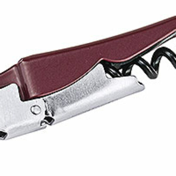 Trybuszon wykonany ze stali nierdzewnej 18/0 do dużych butelek. Z plastikowym uchwytem. Posiada korkociąg i nożyk.