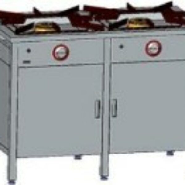 Trzon gastronomiczny gazowy 2-palnikowy, 1150x600x850 mm z szafką, 1x7+1x9 kW | EGAZ, TG-217.IV