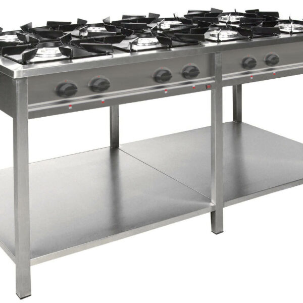 Trzon gastronomiczny gazowy 8-palnikowy, 1700x700x850 mm z półką, 3x3,5+3x5+2x7 kW | EGAZ, TG-8736.III