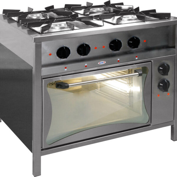 Trzon gastronomiczny gazowy 4-palnikowy z piekarnikiem elektrycznym, 900x900x850 mm, 27,1 kW | EGAZ, TG-424/PKE-2