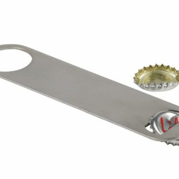 Otwieracz barmański wykonany z satynowanej stali nierdzewnej. Można myć w zmywarkach.