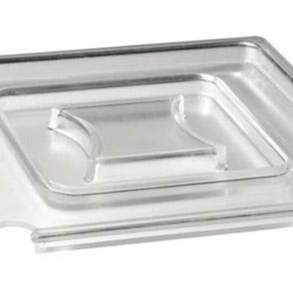 Pokrywka kwadratowa z wycięciem na łyżkę. Wykonana z tworzywa SAN. Można myć w zmywarkach i sztaplować.