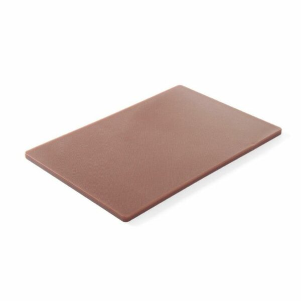 Profesjonalna deska do krojenia HACCP dwustronnie gładka, wykonana z polietylenu HDPE 500, zgodna z normami HACCP. Można myć w zmywarkach. Deska brązowa przeznaczona do gotowanego mięsa i wędlin.