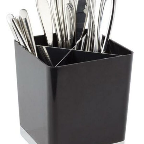 Pojemnik stołowy na zużyte woreczki z herbaty, wykałaczki, torebki po cukrze itp. Wykonany z tworzywa sztucznego w kolorze czarnym z rantem ze stali. Może służyć także jako pojemnik na sztućce. Posiada antypoślizgowe nóżki. Można myć w zmywarkach i sztaplować.